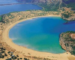 The beach is presumed to be Homer’s “sandy Pylos” where Telemachus was welcomed by King Nestor when searching for his father, Odysseus. According to myth, Nestor’s Cave is where Hermes hid the cattle stolen from Apollo.[5]