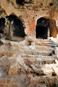 In these underground catacombs, the hermits descended by steps carved into the porous ground. Over the years, its eastern part was destroyed by the Franks and Venetian conquerors when constructing Methoni Castle. As a result, only a few cavities are left in the western slope of the porous rock. It is believed that the remaining part was later used as an ascetic church in honour of St. Onoufrios and had frescoed on all its internal surfaces. Until 1961, when archaeologists became aware of the importance of the catacombs, other hardships occurred, as the cave was also used by shepherds for their flocks. The fires they made unfortunately destroying much of the iconography.